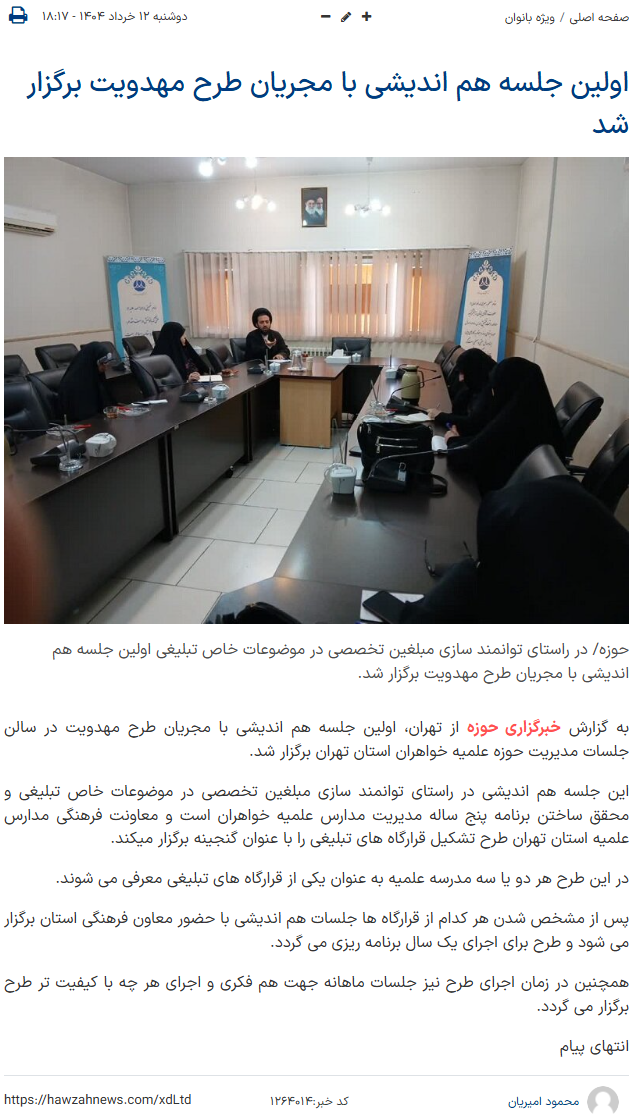 به گزارش خبرگزاری حوزه از تهران، اولین جلسه هم اندیشی با مجریان طرح مهدویت در سالن جلسات مدیریت حوزه علمیه خواهران استان تهران برگزار شد.