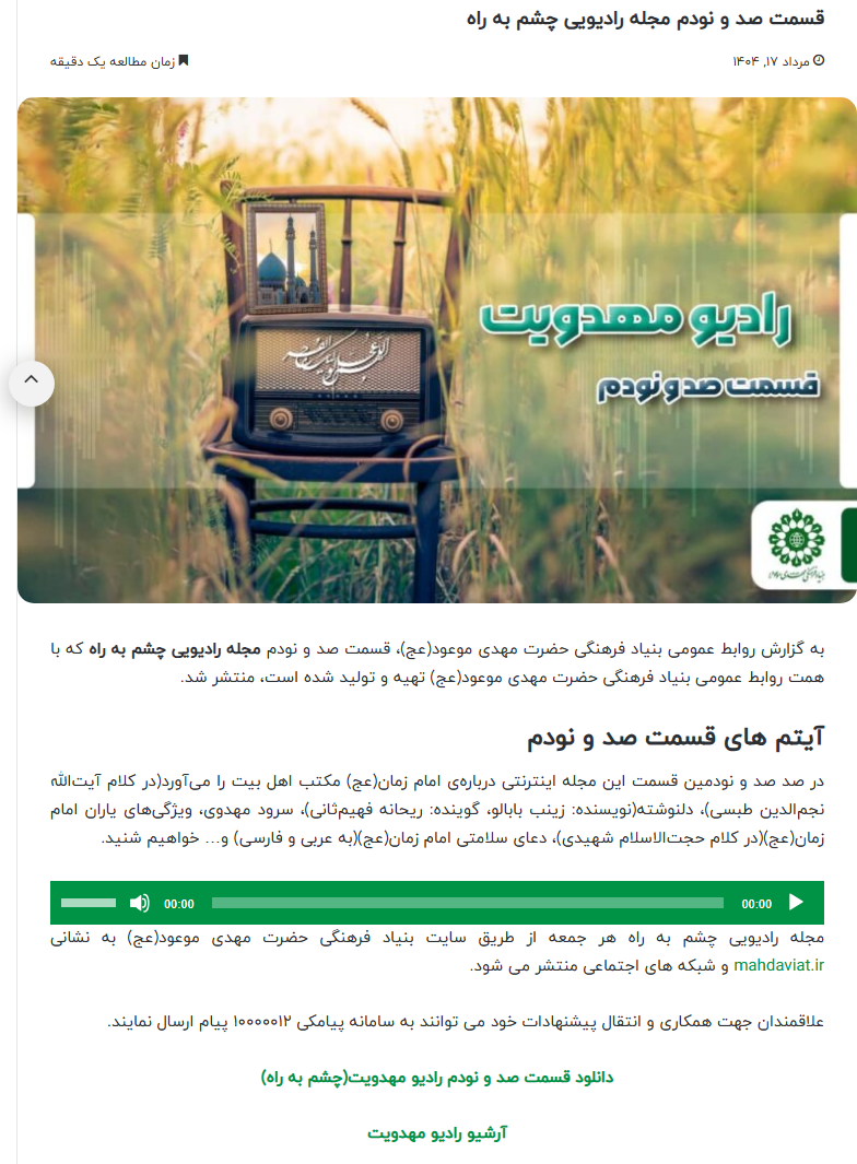 قسمت صد و نودم مجله رادیویی چشم به راه منتشر شد.