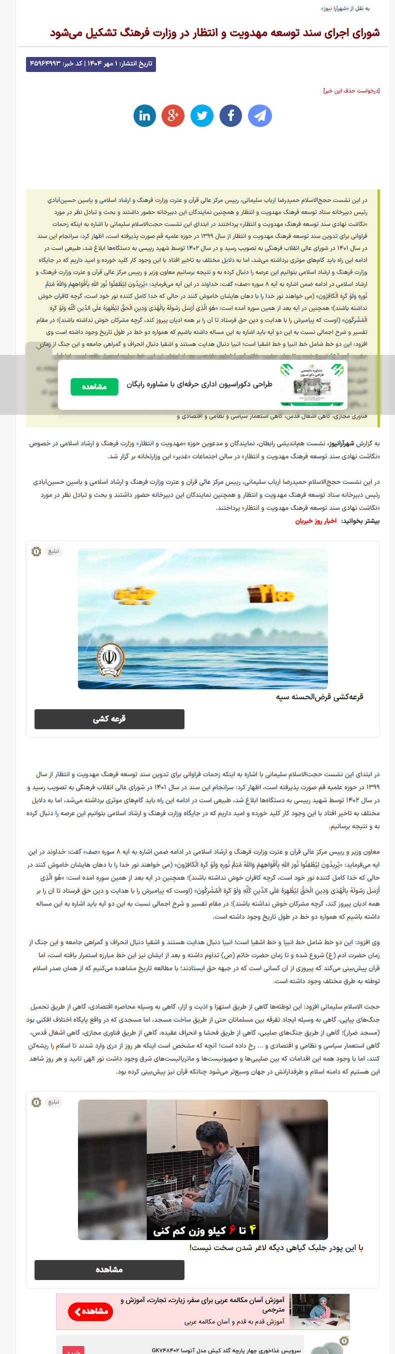 نشست هماندیشی رابطان، نمایندگان و مدعوین حوزه «مهدویت و انتظار» وزارت فرهنگ و ارشاد اسلامی در خصوص «نگاشت نهادی سند توسعه فرهنگ مهدویت و انتظار» در سالن اجتماعات «غدیر» این وزارتخانه بر گزار شد.