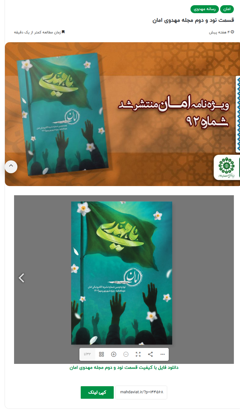 شماره نود و دوم مجله امان منتشر گرديد. در ادامه مي توانيد اين شماره از مجله امان را دريافت نماييد.