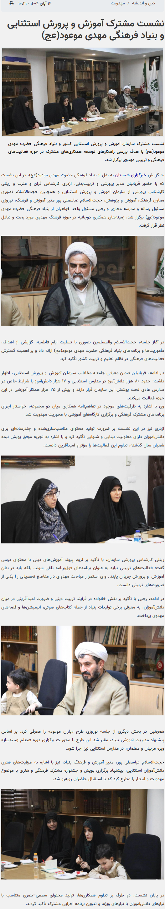 نشست مشترک سازمان آموزش و پرورش استثنایی کشور و بنیاد فرهنگی حضرت مهدی موعود(عج) با هدف بررسی راهکارهای توسعه همکاریهای مشترک در حوزه فعالیتهای فرهنگی و تربیتی مهدوی برگزار شد.