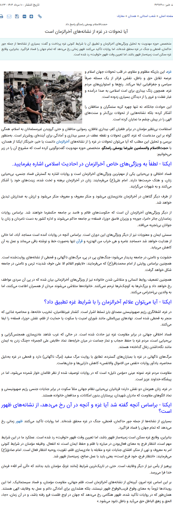 آیا میتوان علائم آخرالزمان را با شرایط غزه تطبیق داد؟